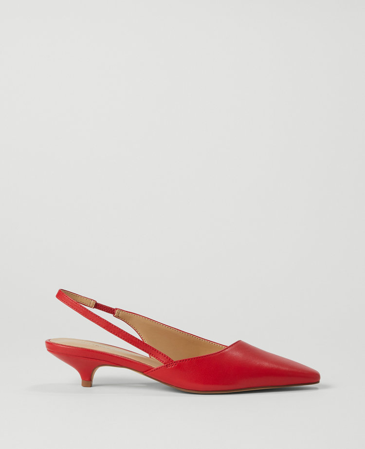 Asymmetrical Leather Slingback Kitten Heel Pumps