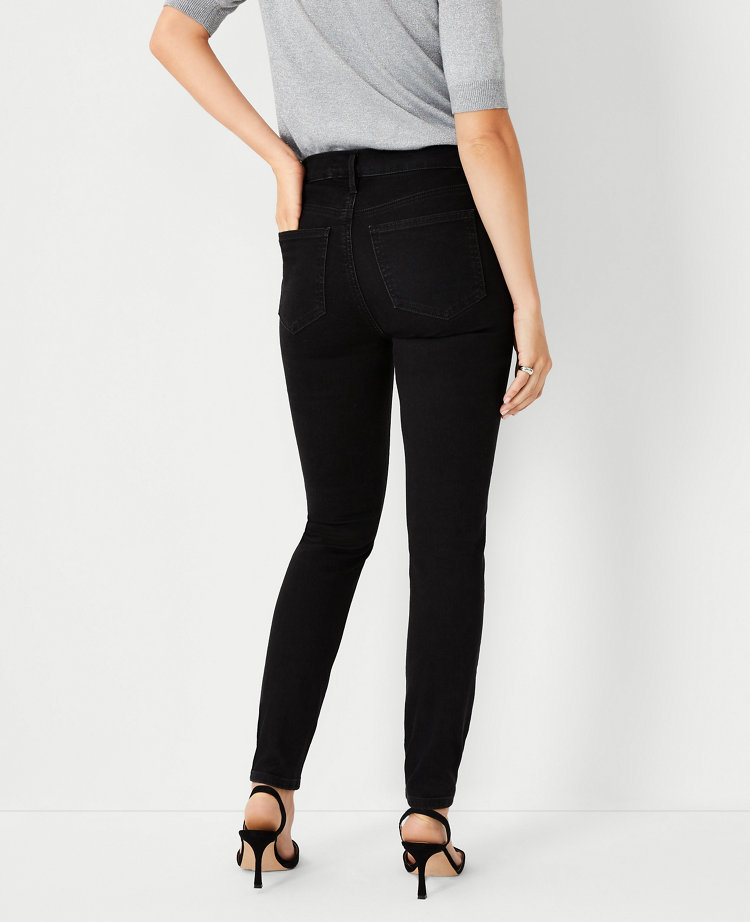 Petite Mid Rise Skinny Jeans in Jet Black Wash