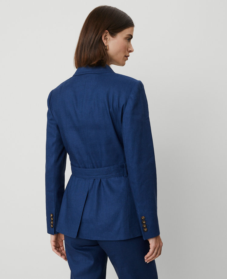 Petite Longer Tailored Double Breasted Blazer in Linen Blend