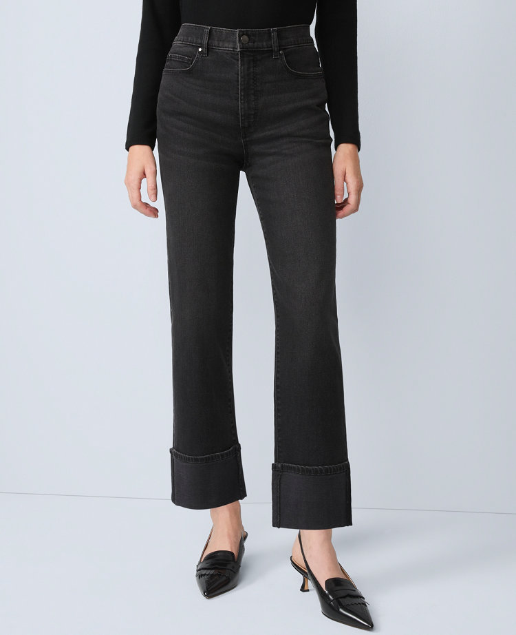 Petite High Rise Straight Jeans in Vintage Mid Indigo Wash - Curvy Fit