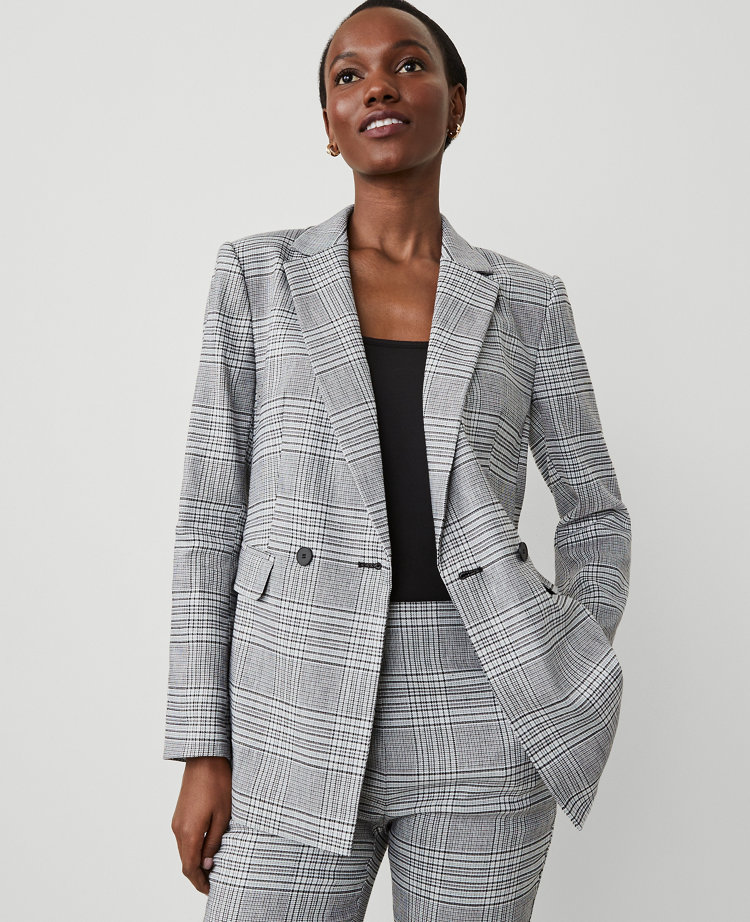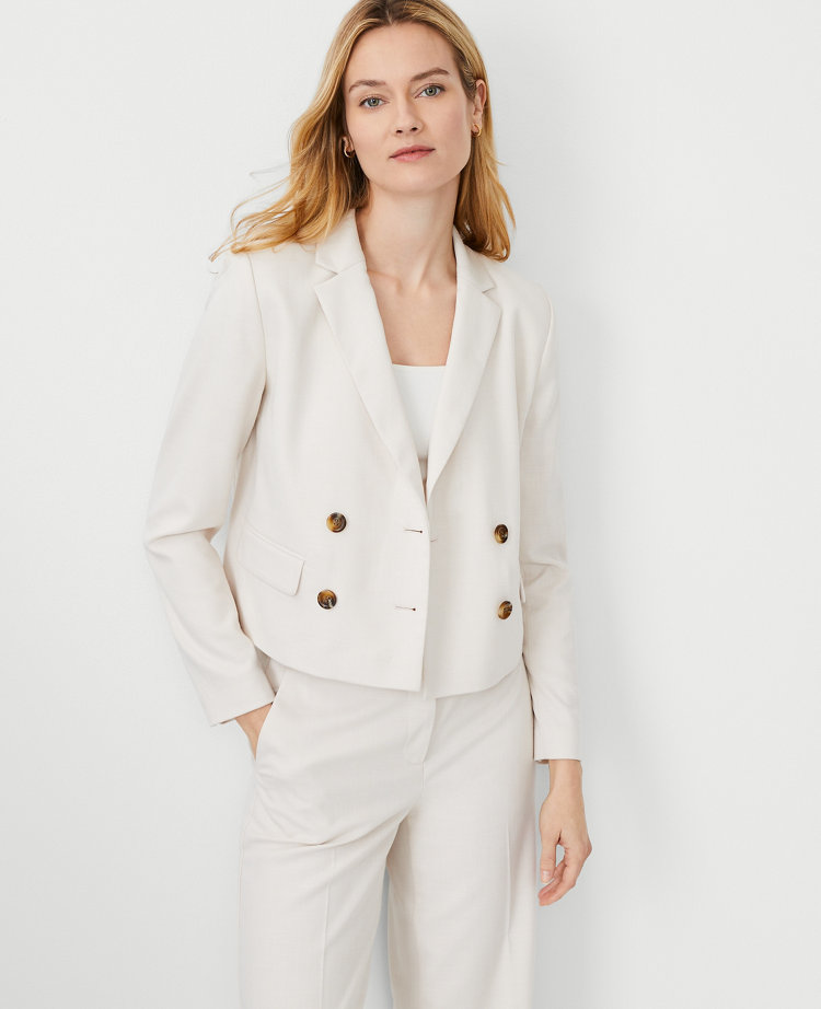 The Tall Cropped Double Breasted Blazer in Textured Stretch
