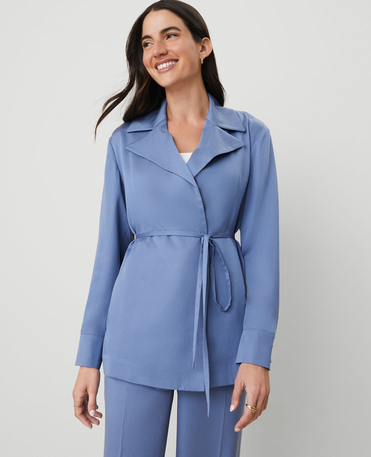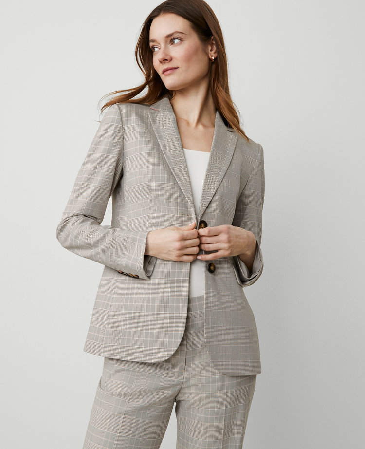 Petite Longer Tailored Double Breasted Blazer in Linen Blend