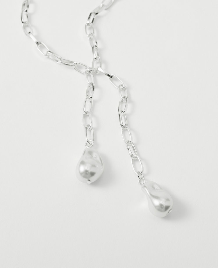Double Pearl Lariat Necklace