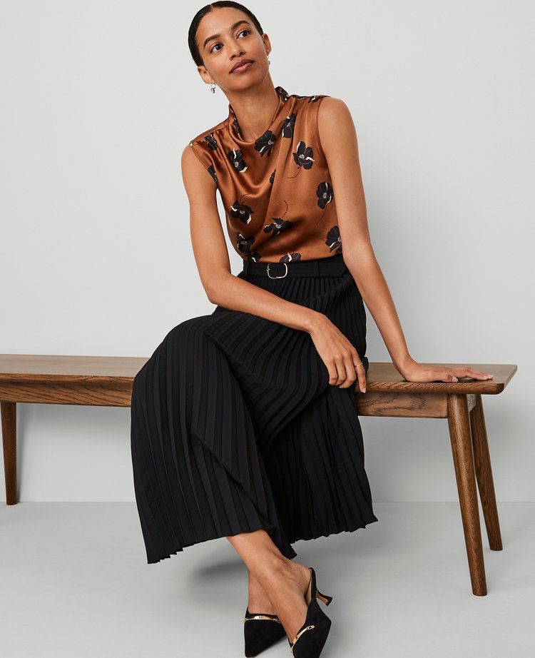 Keep it modern and easy with our belted pleated midi skirt, styled for a fully feminine spin. Belt loops. Self tie buckle belt. Hidden side zipper with hook-and-eye closure.