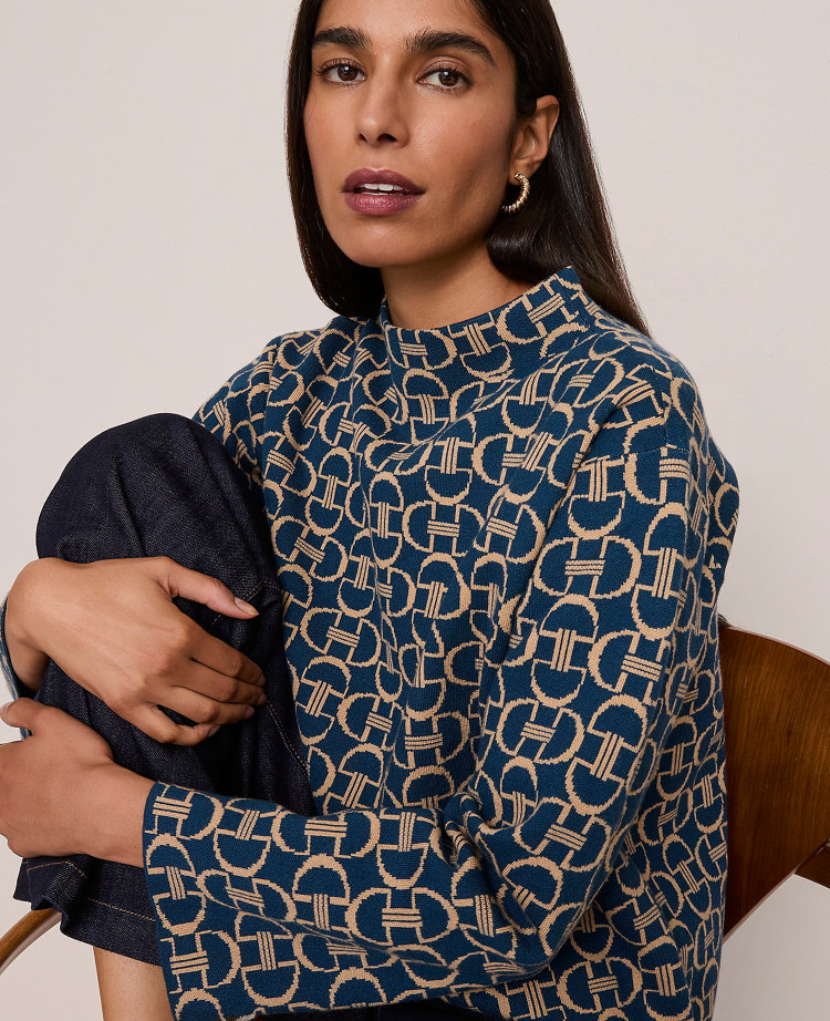 A chic mock neck and relaxed sleeves shape this must-have sweater. Mock neck. Long raglan sleeves. Dropped shoulders.