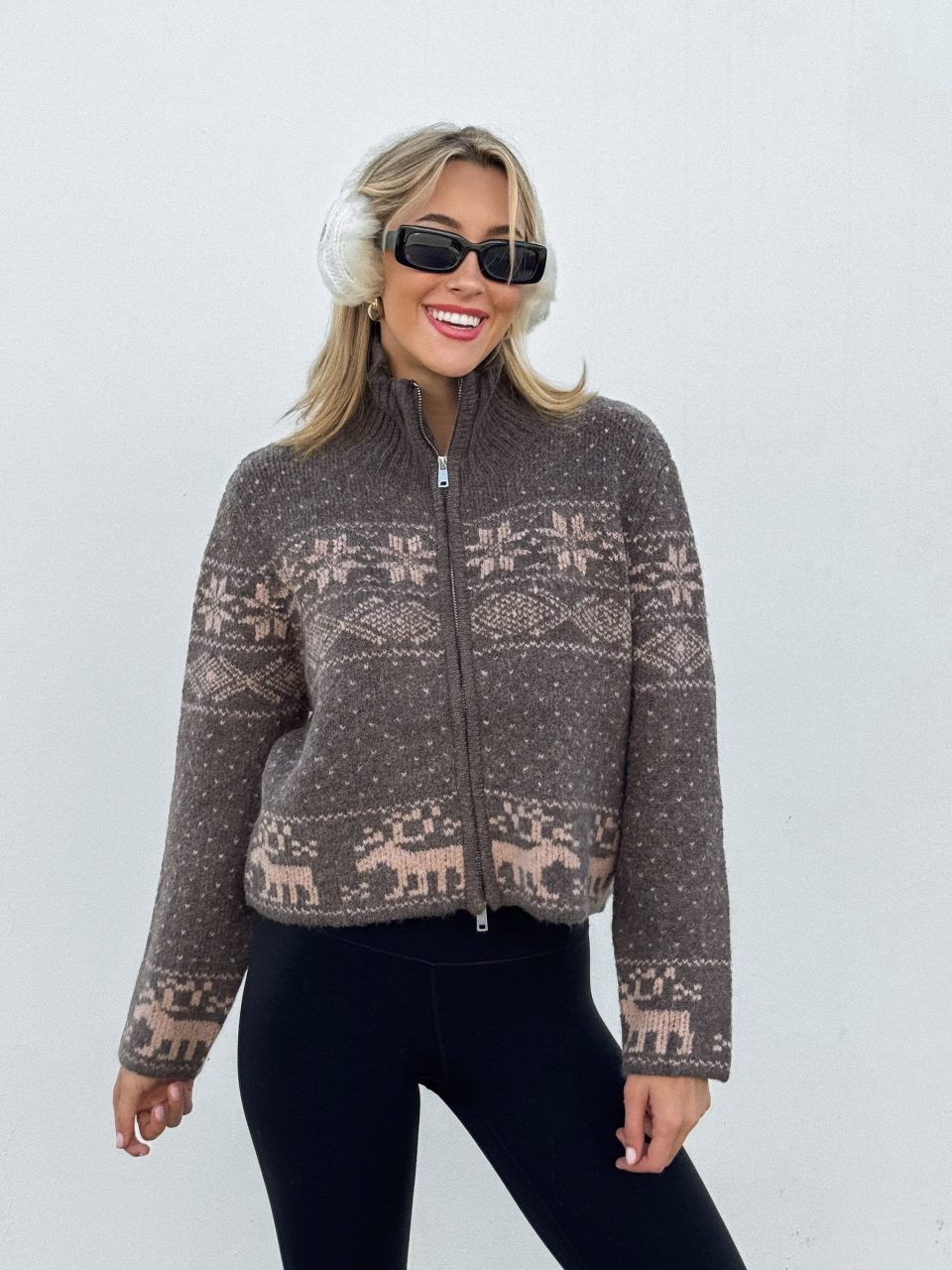 This color combo is EVERYTHING. Style this cozy. winter quarter zip with high rise denim and a brown cowboy rancher.
