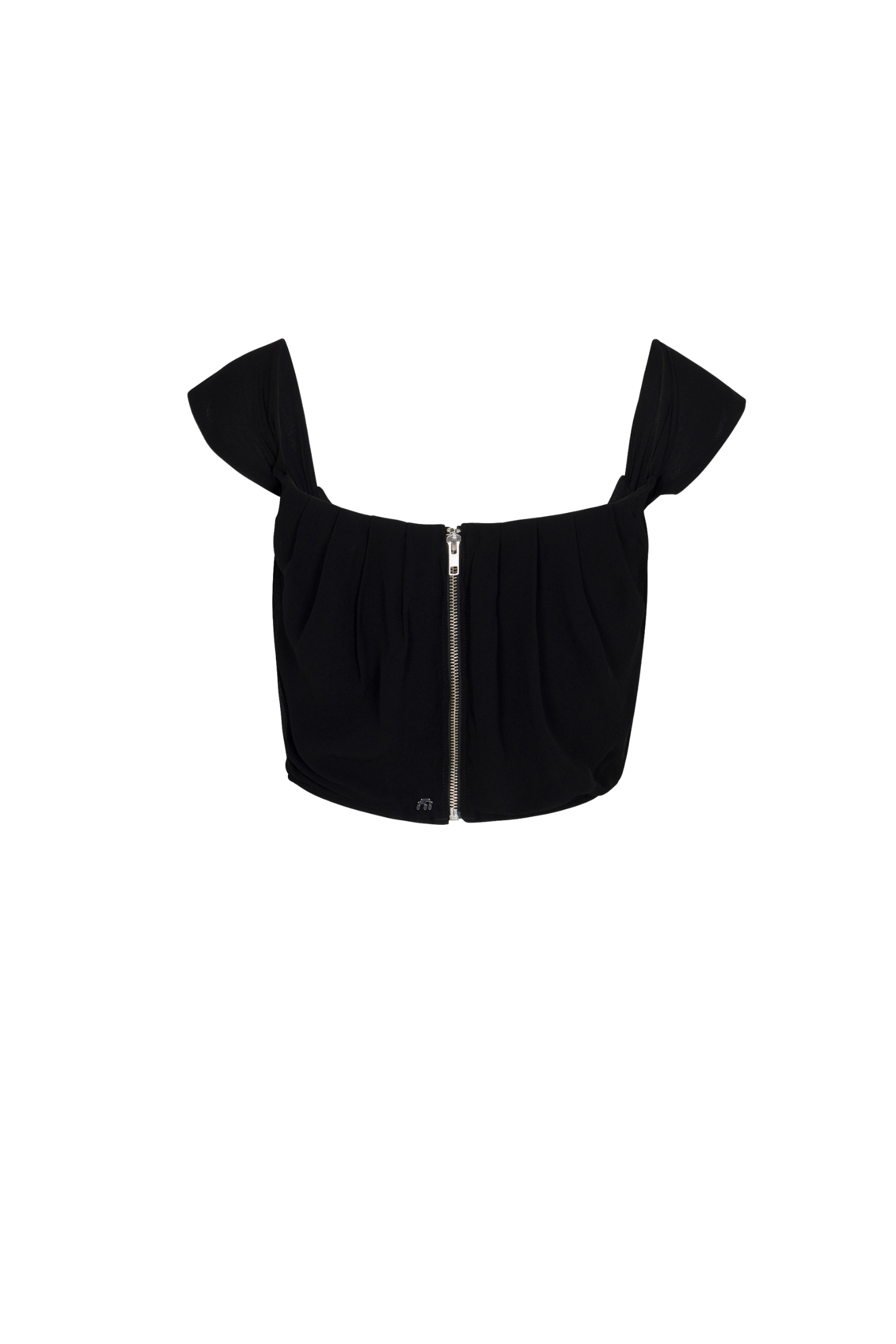 By popular demand we’ve brought back an OG. the Cleo Corset. in black georgette. She’s an off shoulder. cropped number with a back zipper and fitted bodice. Perfect for a night out. Pair with our sexy. sheer Rue Skirt.