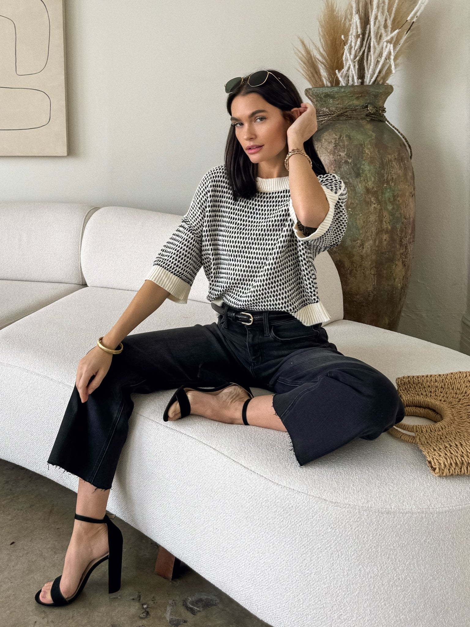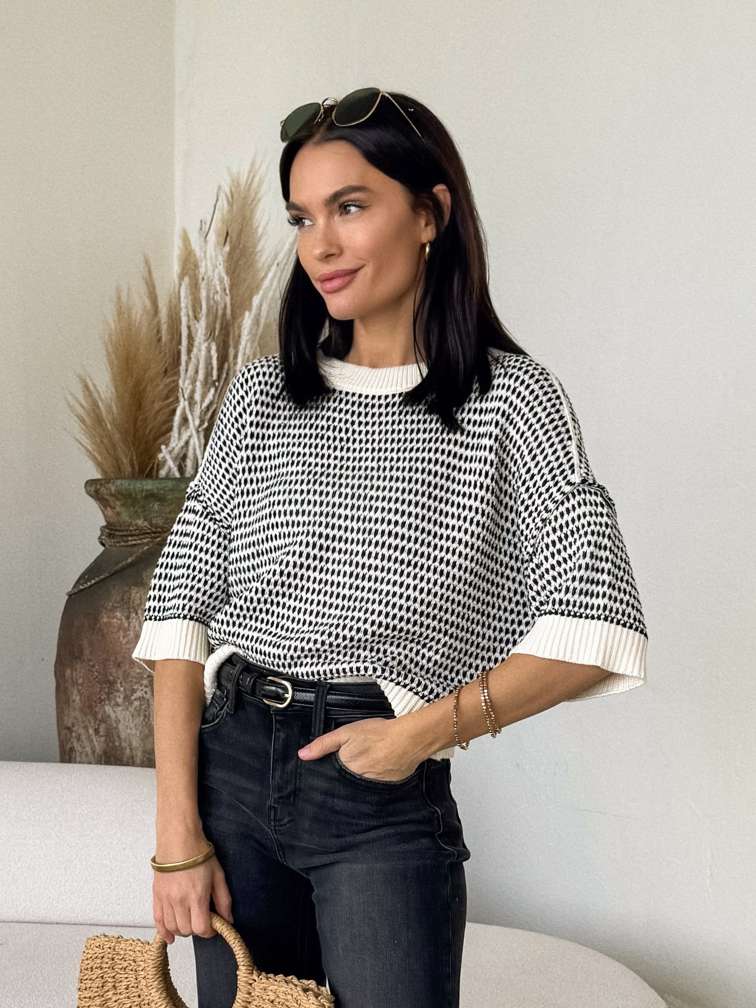 Elevate your style with our NEW Harvey Knit Top! Pair with a black mini skirt. tights. and boots for dinner and drinks with the girls! Bundle up with a black blazer and finish the look with gold jewelry.