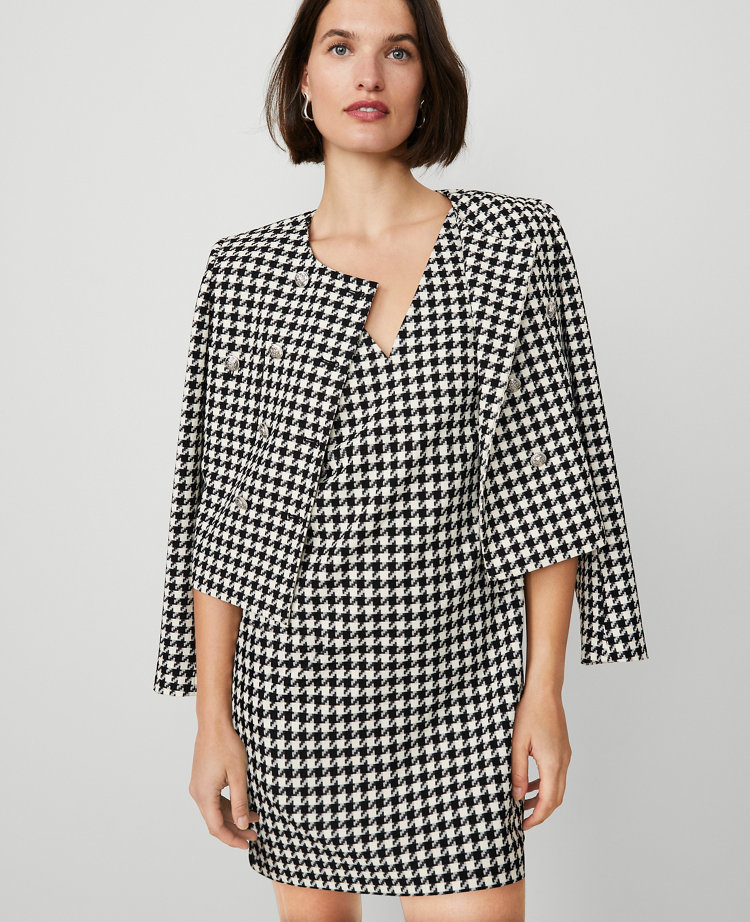 Clean and streamlined, this houndstooth shift is the ultimate way to dress the part. Front and back V-neck. Sleeveless. Hidden back zipper with hook-and-eye closure. Lined.