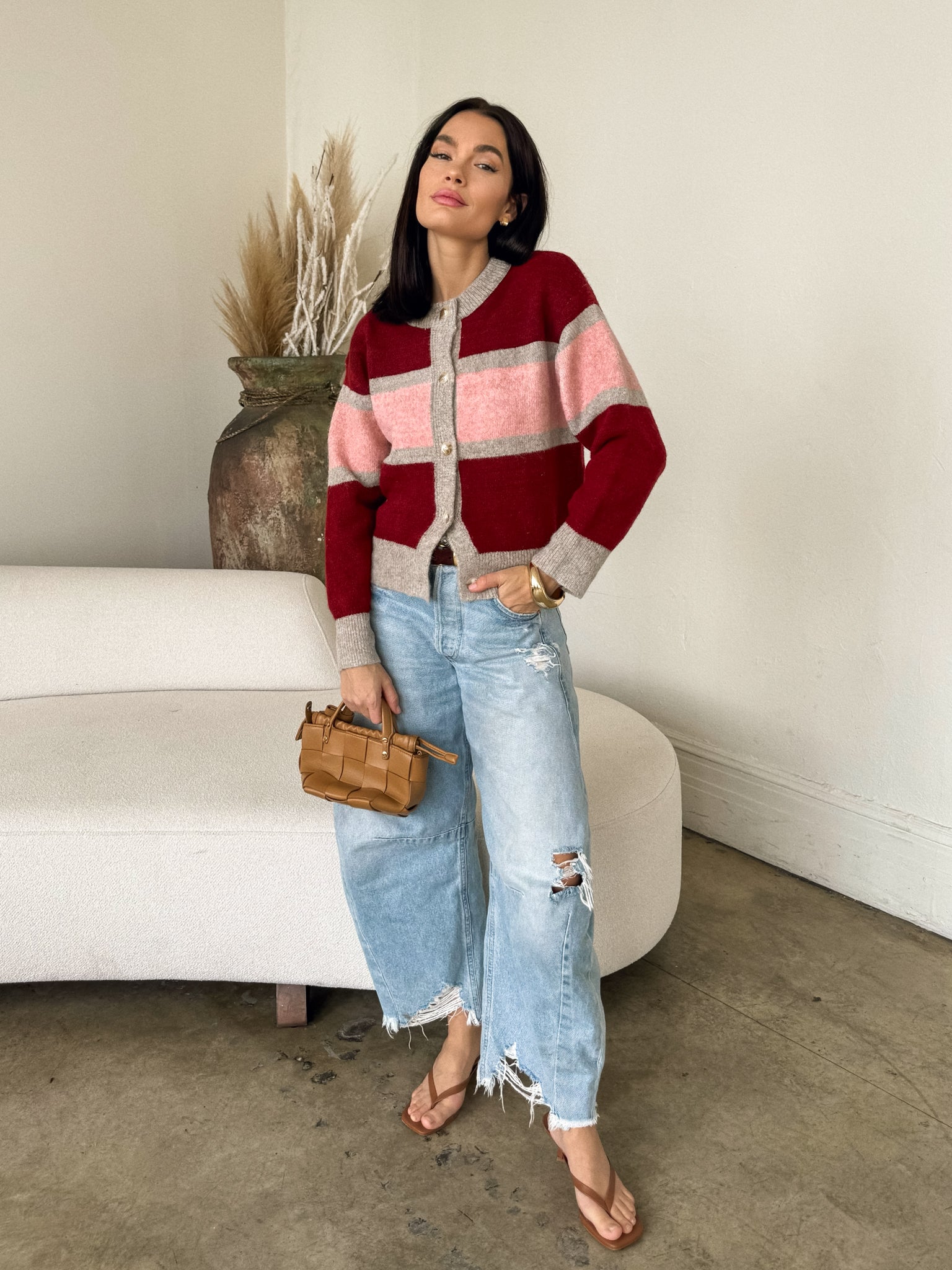 Meet our new go-to sweater this winter season! Our Octavia Button Down Sweater features a color block pattern and cozy knit material. Style this sweater with your favorite pair of relaxed denim. birks. and crochet mini bag for an effortless winter look! Accessorize with a belt and gold jewelry.