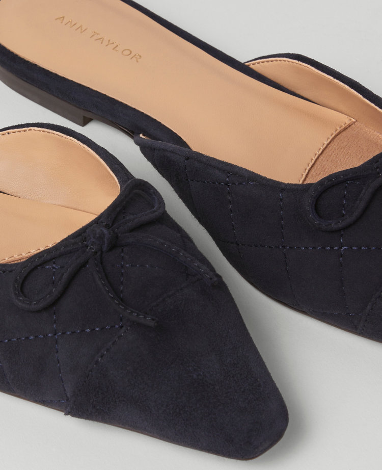 Step up your style game with these refined slides, crafted in rich suede. Pointy toe. Padded footbed for complete comfort. 1/4″ heel.