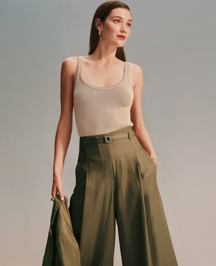 This softly textured tank is a year-round layering staple. Scoop neck. Sleeveless.