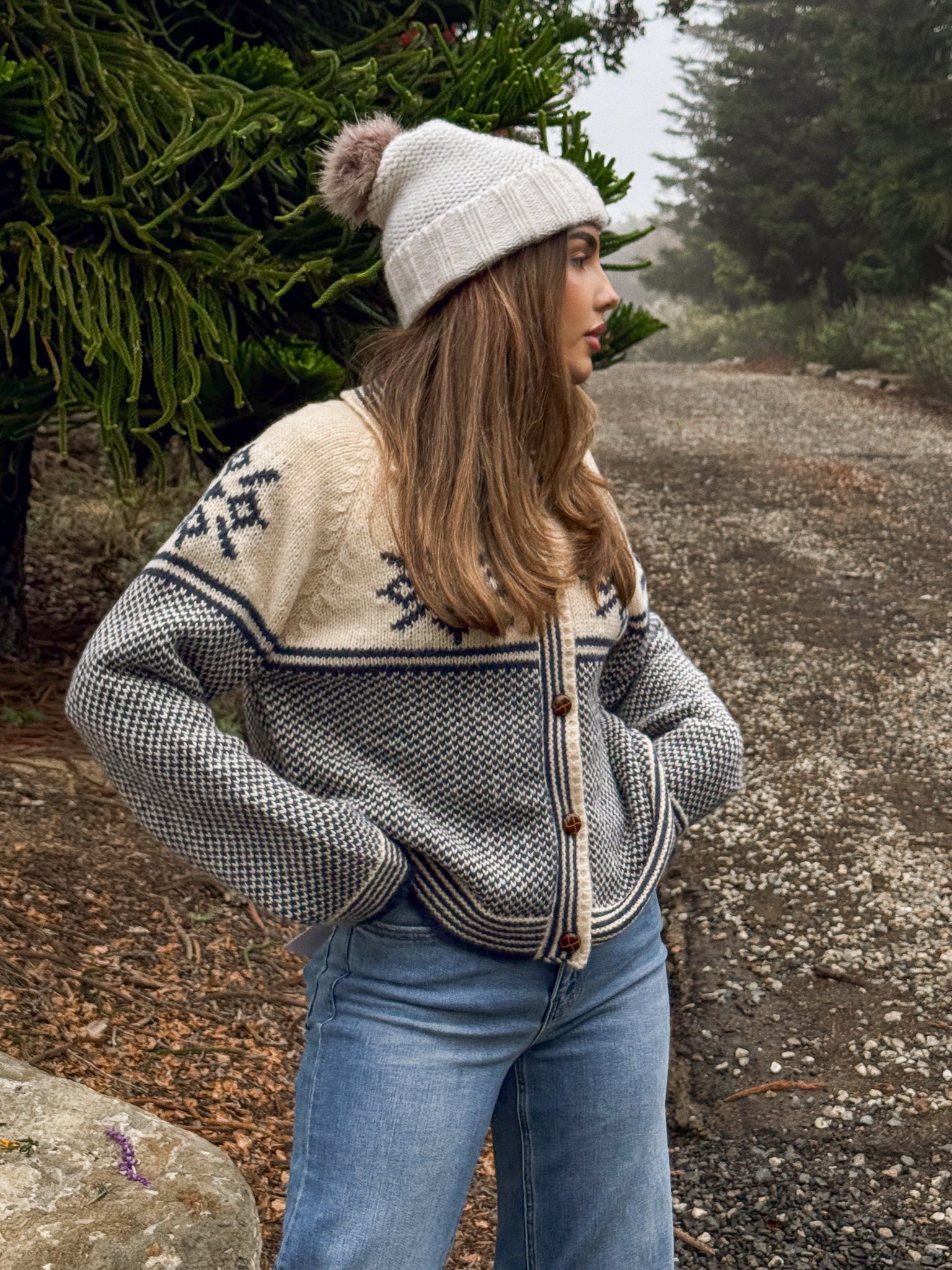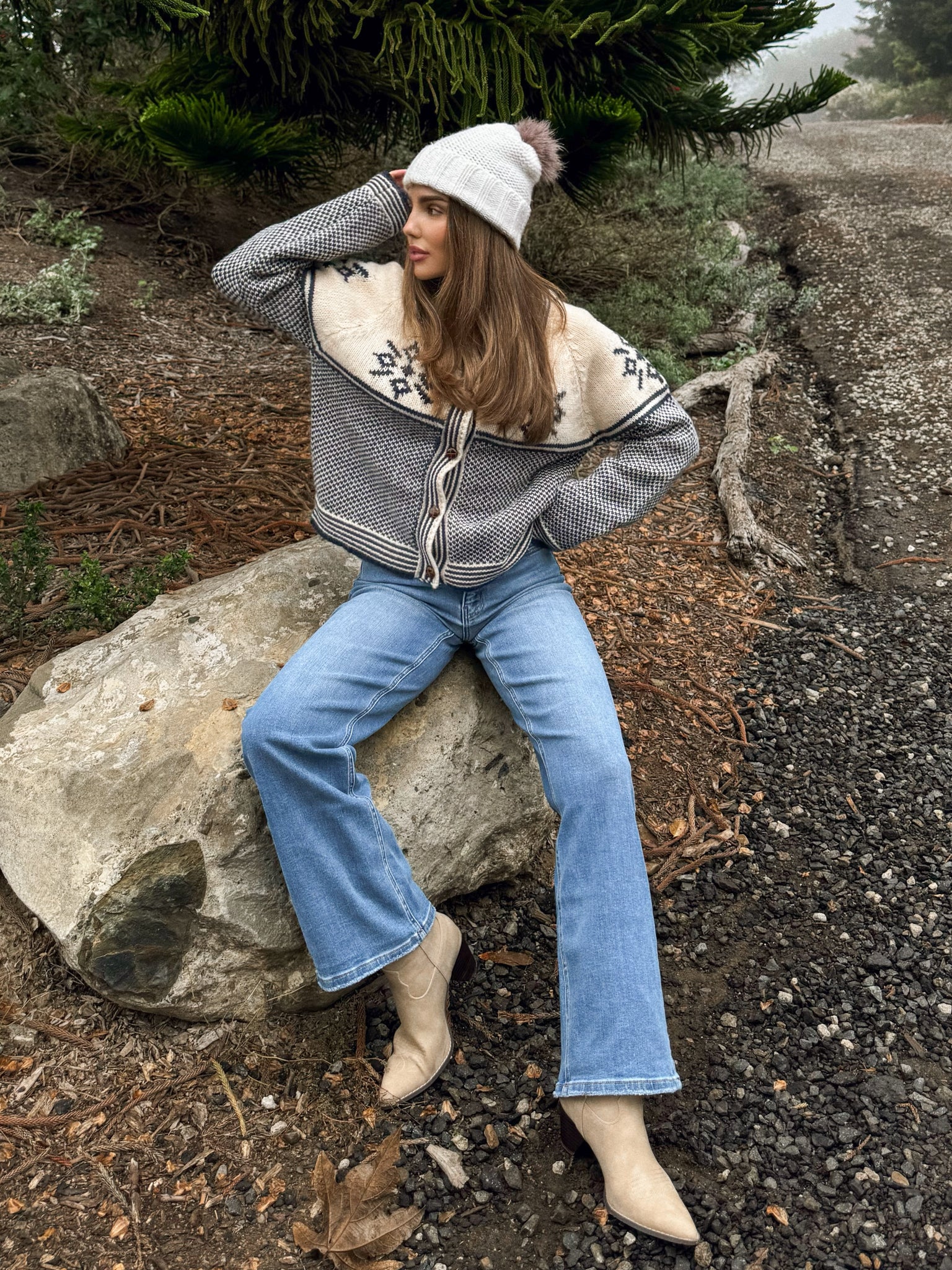 This sweater feels like FALL-ing in love. Our Skye Nordic Knit Sweater is a new staple for our winter lovers. Style with relaxed jeans. warm uggs. and gold jewelry for a warm. cozy vibe.
