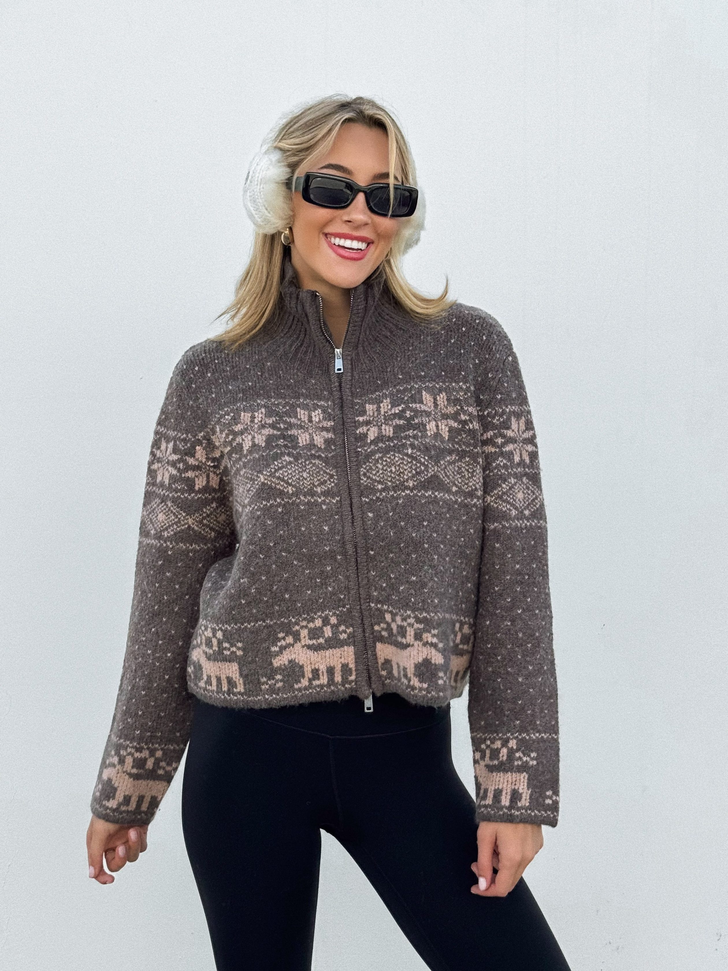 Our favorite winter trend: nordic sweaters. Style our NEW Solace Nordic Knit Sweater with black leggings and black boots for an elevated. comfy look! Complete the look with some sunnies and gold jewelry.