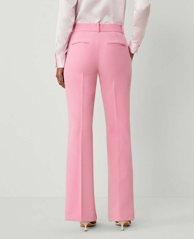 A classic leg-lengthening, slightly flared silhouette. Front zip with double hook-and-bar closure. Belt loops. Front off-seam pockets. Back besom pockets.