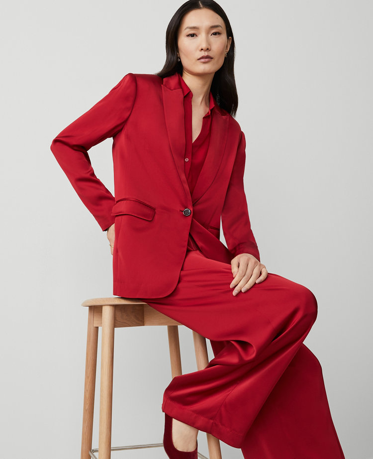 Worn head-to-toe or mix-and-matched, our impeccably tailored blazer is a suiting essential you’ll wear season after season. Peaked lapel. Long button-open sleeves allow for versatility in styling. One-button front. Front flap besom pockets. Back vent. Lined.