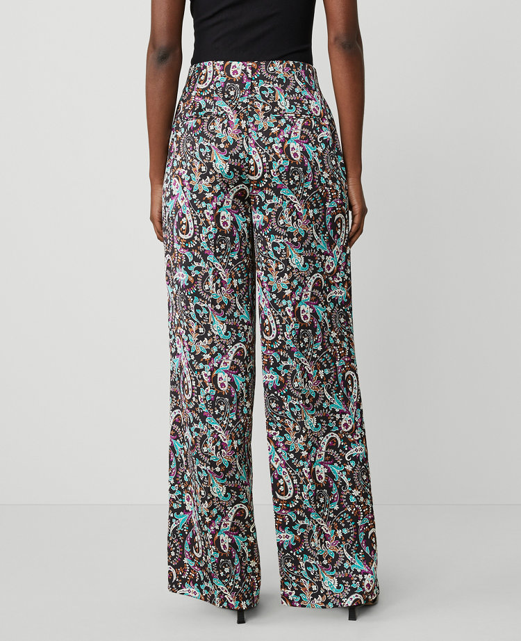 Our single-pleat paisley wide-leg pant is a modern must-have with a perfect drape and high waist that endlessly flatters. Front zip with double hook-and-bar closure. Belt loops. Front off-seam pockets. Back besom pockets.