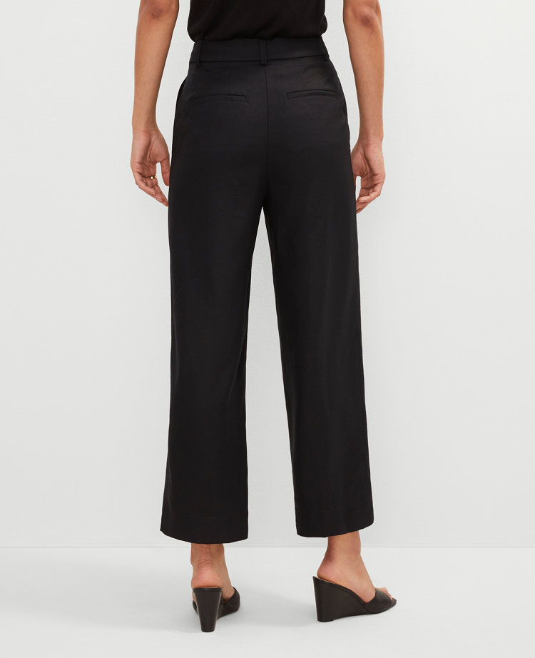 Refined and timeless, our ankle pant is designed with sharp pleats and an elongating leg for a polished and tailored finish. Front zip with a hook-and-bar closure. Belt loops. Slash pockets. Back besom pockets.