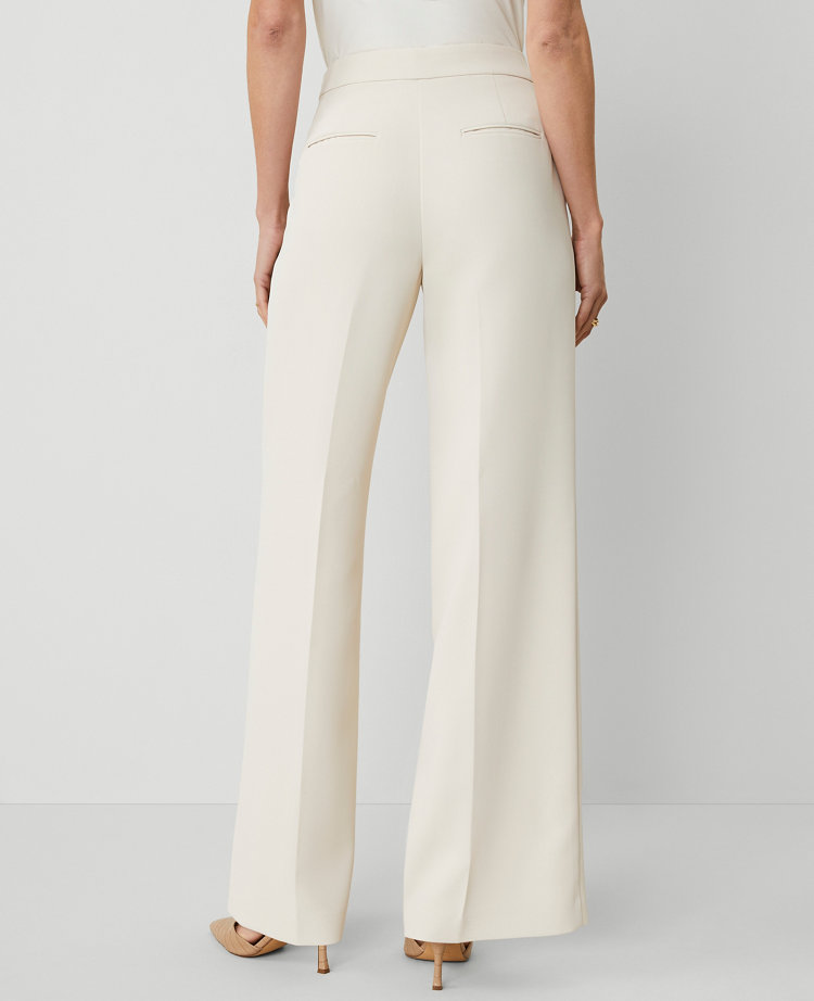 Our wide leg pant is a modern must-have with a perfect drape and high waist that endlessly flatters. Side zip. Slash pockets. Back besom pockets. Lined.