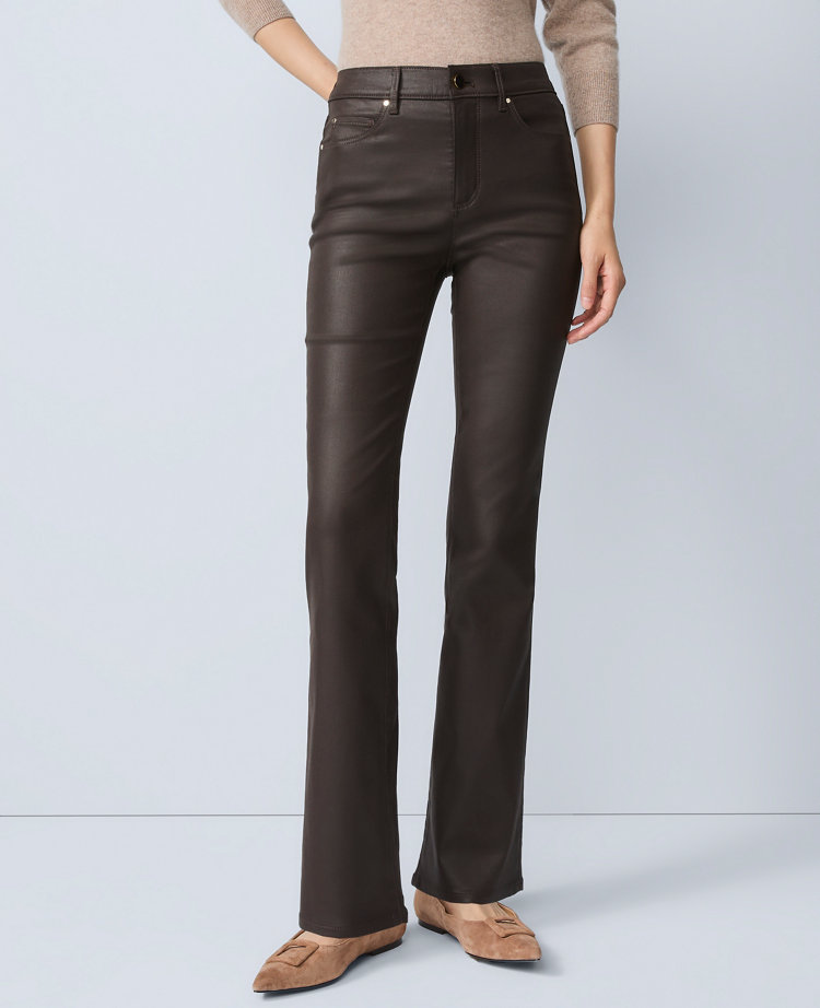 The classic lean fit of this straight-leg pant gives it a chic, structured silhouette. Front zip with hook-and-bar closure. Belt loops. Front off-seam pockets. Back besom pockets.
