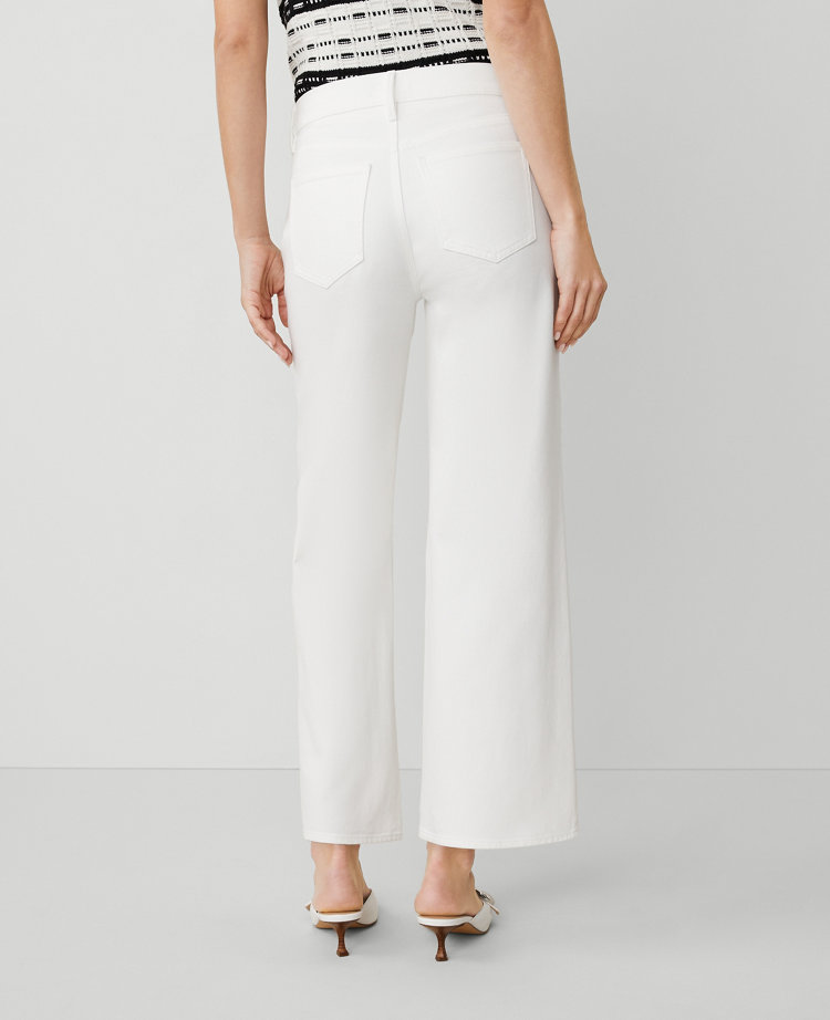 Our high-rise, wide-leg crop jeans are designed with sculpting pockets that smooth, flatter and hold your shape. Performance stretch denim sculpts, shapes and supports all day long. Front zip with a button closure. Belt loops. Classic five-pocket styling.